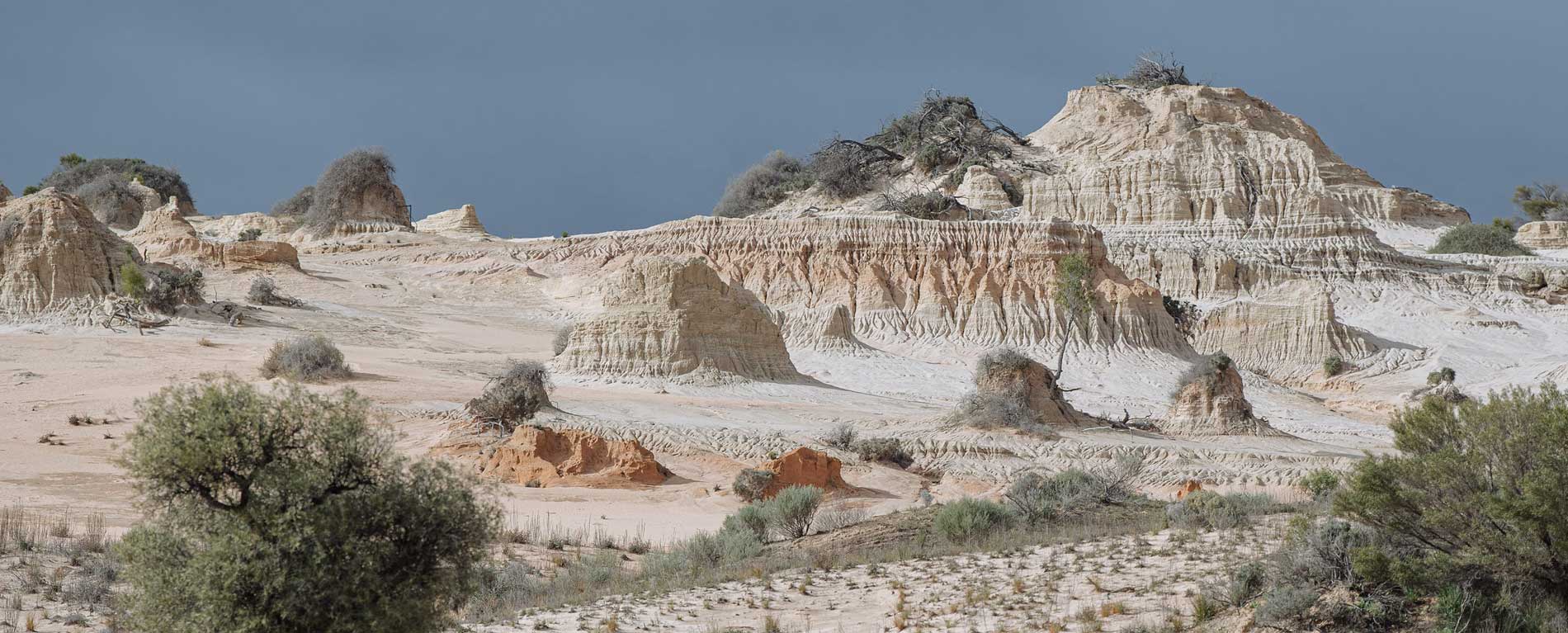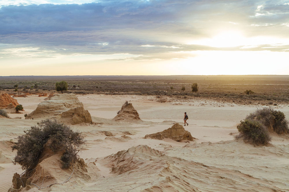 Lasst euch in der prähistorischen Landschaft des Mungo National Parks in eine Zeit zurückversetzen, die wir uns heute kaum vorstellen können. Spektakuläre Sonnenaufgänge färben die markante Dünenkette in gelbes, oranges und tiefrotes Licht. Spannende Infos und Geschichten über den Park könnt ihr während einer geführten Tour erfahren.