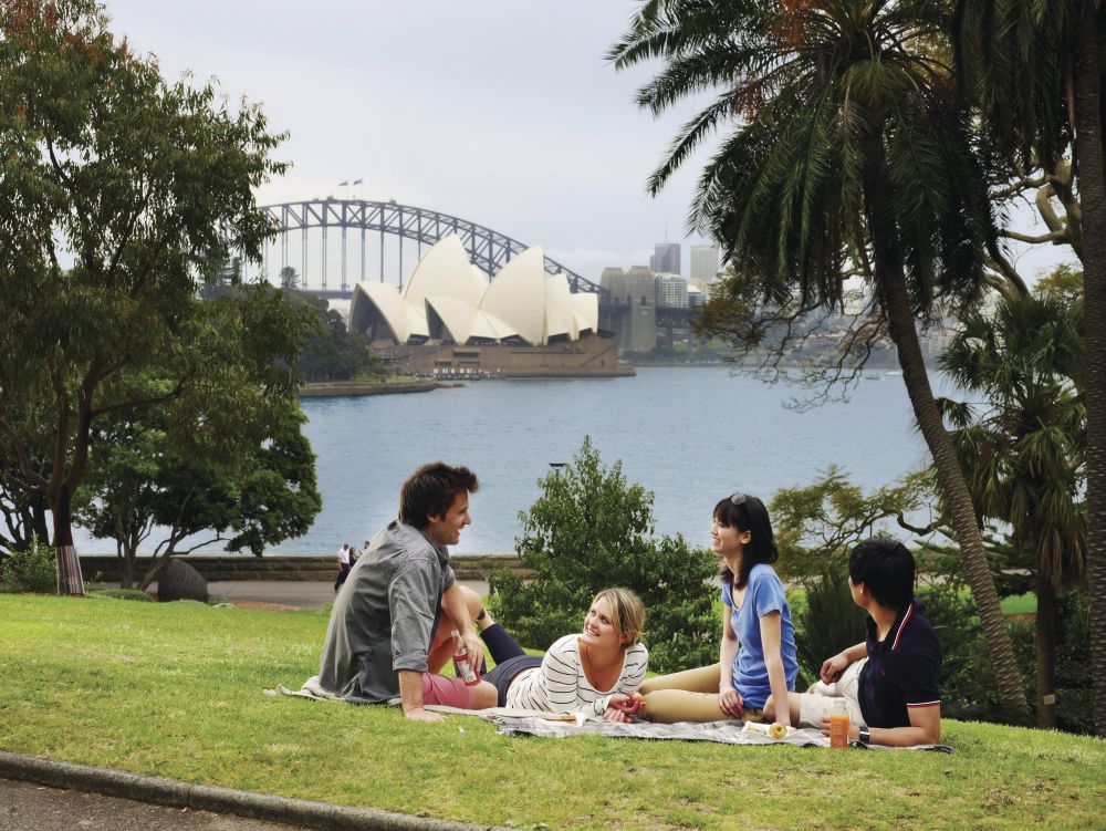 "Mrs Macquaries Point" in der Nähe von Mrs Macquarie's Chair am untersten Ende des Parks, eröffnet spektakuläre Blicke auf den Hafen und weite Rasenflächen – Betreten ausdrücklich erlaubt! – laden zum Picknick ein.