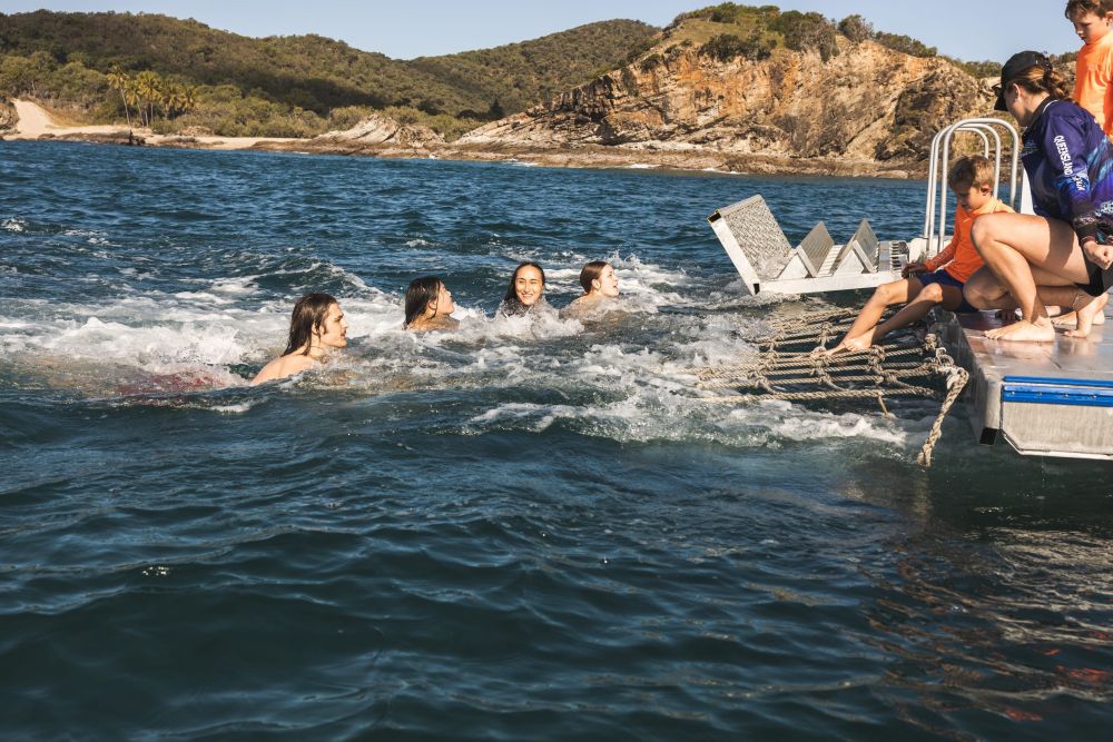 Wer den Transfer zur Insel mit einer Fahrt im Glasbodenboot, unterstützt von Meeresbiologen, einem Mittagessen und Nachmittagstee sowie einem Aufenthalt auf der Insel verbinden möchte, bucht eine Tagestour ab Rosslyn Bay mit oder ohne "Boomnet Experience" & Schnorchel-Ausflug (Fotos unten).