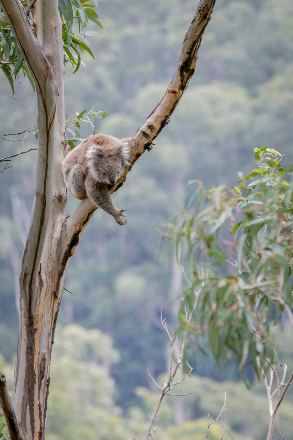 Die Chance, Koalas zu sehen, ist in Kennett River an der Great Ocean Road besonders hoch. Deshalb macht nachmittags, wenn sie aktiv sind, einen Abstecher dorthin und haltet am Straßenrand die Augen offen. Auch andere typisch australische Tiere erlebt man zahlreich in freier Wildbahn.
