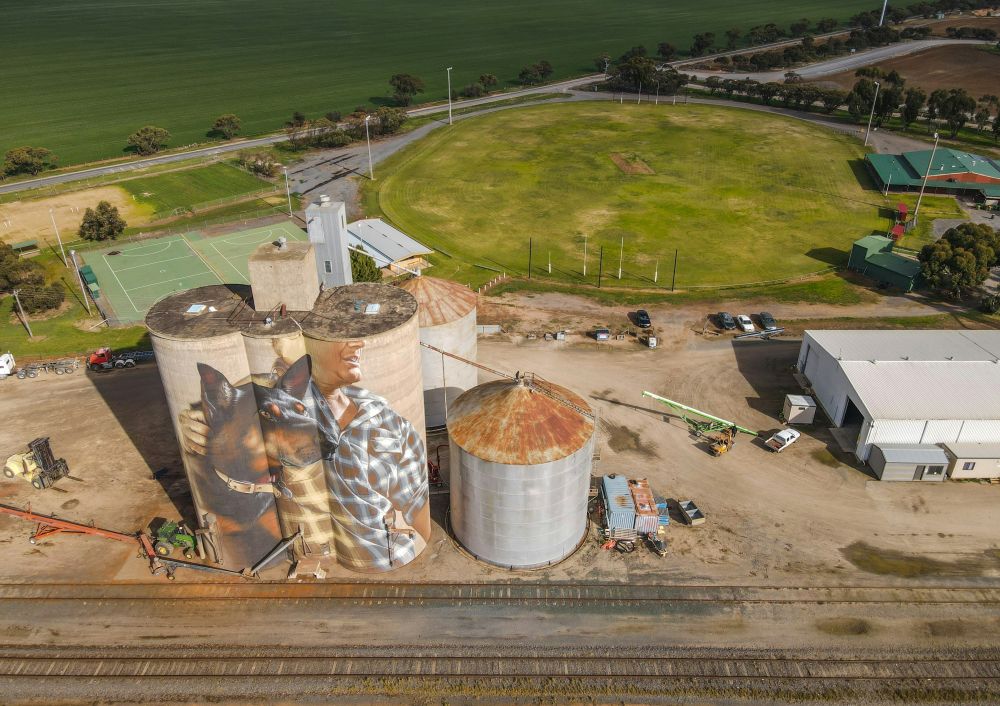 Unter dem Namen „Silo Art Trail“ hat sich in den letzten Jahren ein ganzes Netz solcher Kunstwerke über ländliche Regionen Victorias gelegt. Von Kaniva an der Grenze zu South Australia bis nach Goorambat im Nordosten verteilen sich inzwischen über zwanzig bemalte Silos und Tanks, entstanden in Zusammenarbeit zwischen internationalen Street-Art-Künstlern und winzigen Landgemeinden.