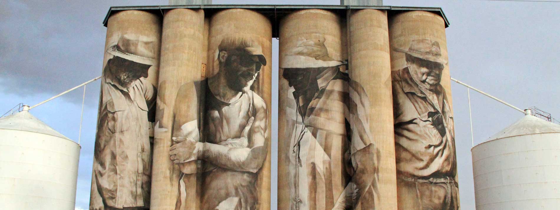 Offiziell fasst die Tourismusbehörde von Victoria derzeit 23 große Kunstwerke auf Silos und Wassertanks zusammen. Sie verteilen sich über vier Regionen des Bundesstaates: Murray, Grampians, High Country und Goldfields. Gemeinsam bilden sie so etwas wie eine riesige, offene Galerie unter freiem Himmel.