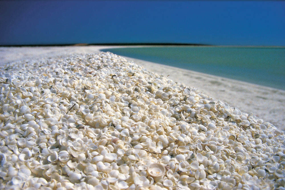 Milliarden von Schalen kleinster Herzmuscheln machen den Strand von Shark Bay, 45 Fahrminuten von Denman, zu etwas ganz Besonderem und zum Weltnaturerbe. Mit seinem komplett aus Muscheln bestehenden Strand gehört er zu einem der wenigen Strände weltweit. Wo einst Sand war, finden sich nun sieben bis 10 Meter dicke Schichten aus Schalen, die sich auf einer Länge von etwa 100 Kilometern erstrecken und tatsächlich nur von einer einzigen Muschelart stammen.