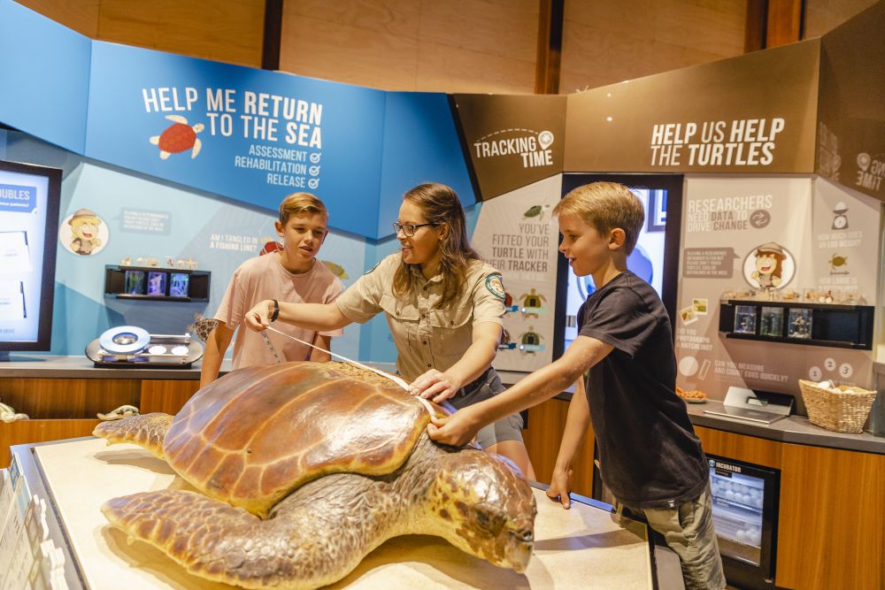 Wer nicht zur Schildkrötensaison in Bundaberg ist, kann trotzdem heute zum Turtle Centre nach Mon Repos fahren, denn es sind nur knappe 15 km. Das Schildkrötenzentrum (geöffnet ab 9:00 Uhr / Map) bietet interessante Informationen zum Schutz der Schildkröten (Foto unten links) sowie geführte Wanderungen mit einem Ranger.