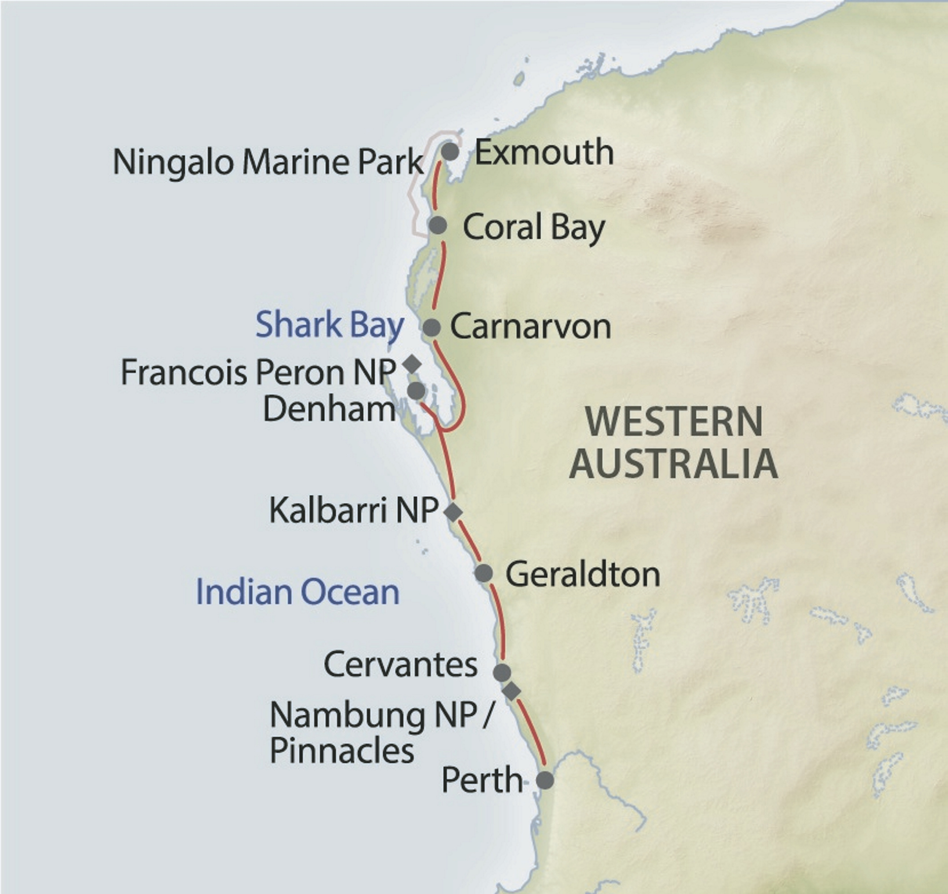 Pinnacles • Kalbarri NP • Monkey Mia • Coral Bay • Cape Range NP