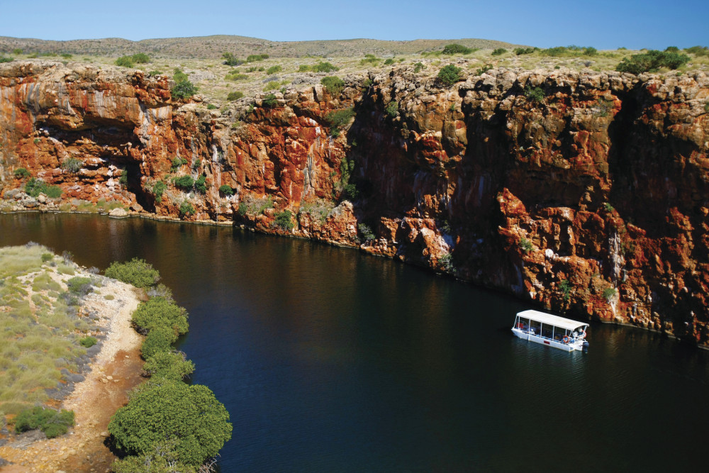 Der wunderschöne Nationalpark hat eine spektakuläre Kulisse und zwei Gesichter: Eine Steilküste in der Nähe der Stadt Kalbarri und eine atemberaubende Schlucht, die rot-weißlich schimmert und ein wahres Naturwunder ist. Auch findet man im Nationalpark den berühmten Murchison River, der sich über 80 Kilometer durch die Landschaft schlängelt, wie eine überdimensionale Schlange.