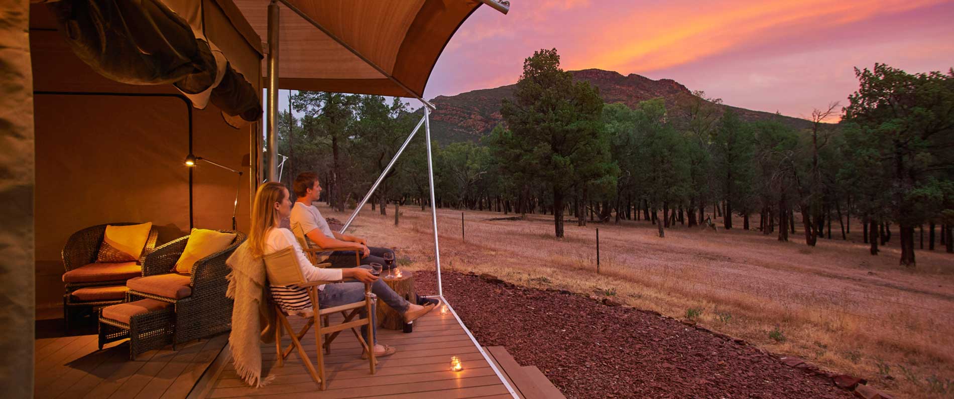 Nach einem erlebnisreichen Tag voll mit Aktivitäten wie Allradtouren, von Aborigines geführte Wanderungen, Natur- und Buschwanderungen sowie Rundflügen über den Wilpena Pound, kann man in seinem Luxus-Zelt zur Ruhe kommen.